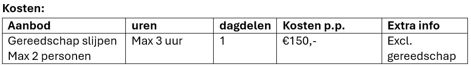 - Beitel slijpen zaterdag ochtend 9 mei van 9:00 tot 16:00 uur