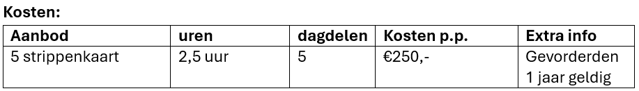 Voor gevorderden die af en toe een les willen volgen, is er een strippenkaart beschikbaar.