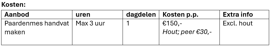 - Handvat paardenmes maken zaterdag ochtend 7 november 9:00 tot 12:00 uur