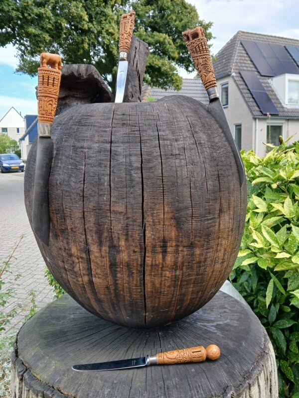 * Het heft is ovaal van vorm, dit ligt lekker en goed in de hand. De omvang heeft ook bepaalde vaste maten waar het tussen varieert. Dit zodat het goed in de lederen schede past;
